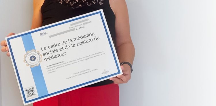 Forte de 30 ans d’expérience en médiation sociale et de 25 ans en tant qu’organisme de formation, Optima affirme sa légitimité en matière d’innovation pédagogique. L’évaluation est réalisée en interne et certifiée par Procertif, garantissant la rigueur et la reconnaissance du dispositif.